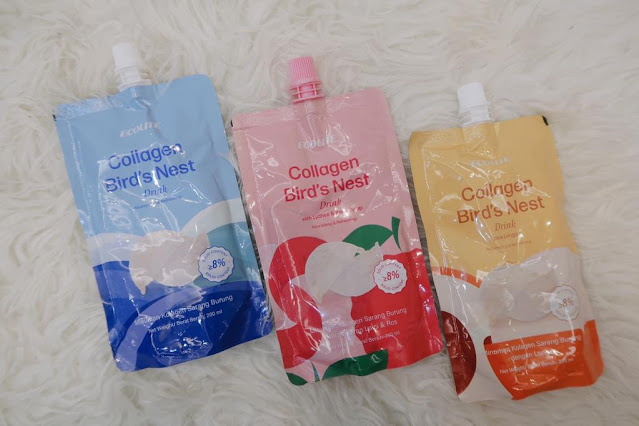 Pek baharu Ecolite Collagen Bird's Nest Beauty In Pouch ini hadir dengan 3 perisa iaitu :